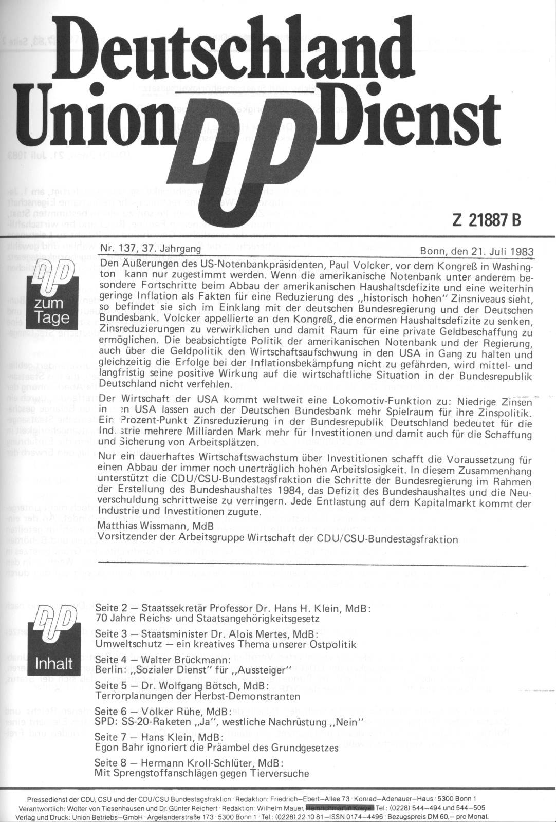 das sein Heil in der Westbindung suchte.