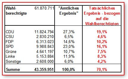 repräsentieren CDU/CSU/FDP gerade mal 33,9% der wahlberechtigten Bürger.